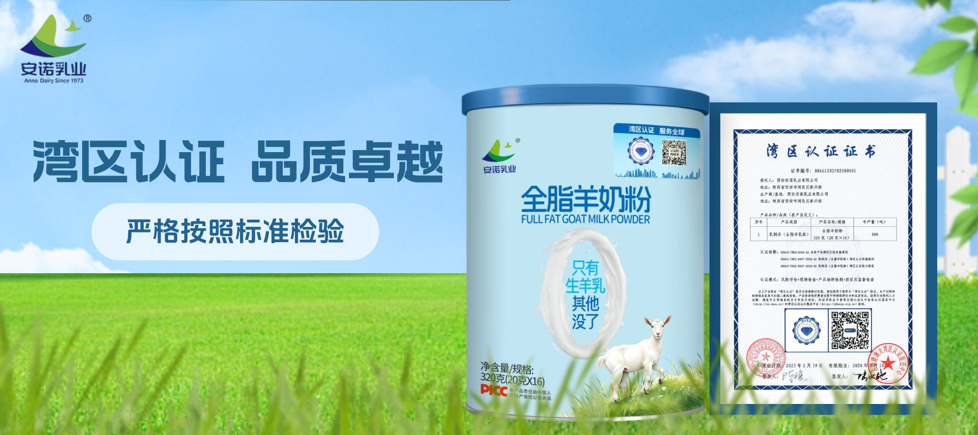 2025年2月19日,安諾乳業旗下全脂羊奶粉榮獲灣區認證證書,成為粵港澳大灣區大健康食品領域首批獲得該認證的羊乳制品企業。這不僅是安